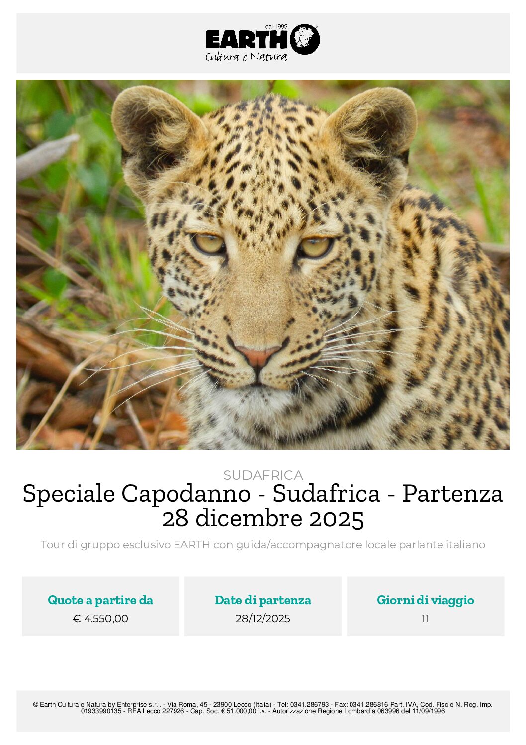 Speciale Capodanno – Sudafrica – Partenza 28 dicembre 2025 Galleria Speciale Capodanno – Sudafrica – Partenza 28 dicembre 2025 Proposte, Varie Speciale Capodanno – Sudafrica – Partenza 28 dicembre 2025 Di Marco|2025-10-10T18:18:39+02:0010 Ottobre 2025|Proposte, Varie| Continua a leggere 0